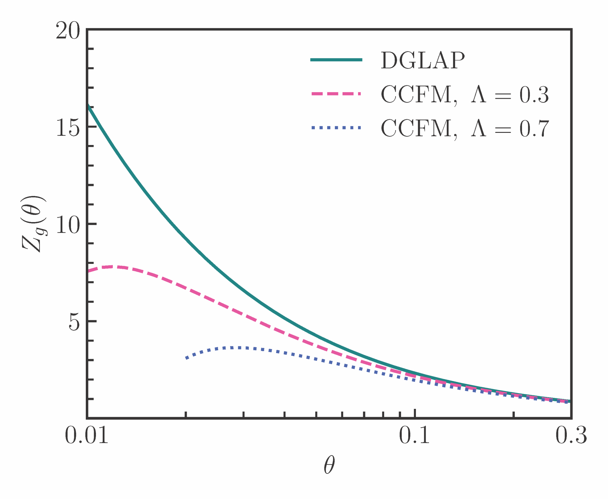 为解决这些挑战,研究团队提出了基于EEC的cos2φ方位角不对称来探测胶子线性极化的新方法,其能量加权有效避免末态软胶子辐射的干扰,为胶子极化测量提供了一条理论上更可靠、实验上更易于实现的途径。为了获得更高的理论精度,研究团队在CCFM框架下,自洽融合了量子相干效应造成的级联劈裂中的角度排序行为。通过考虑量子相干效应,并引入非微扰参数Λ,该理论框架自然捕捉到了EEC在小角度区域的平台(plateau)行为,成功为微扰区向非微扰区的平滑过渡提供了一个统一框架。
