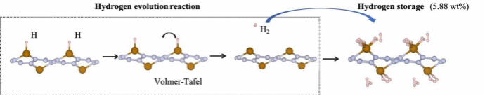 二维铁磁材料2D-Fe2C12析氢和储氢一体化示意图